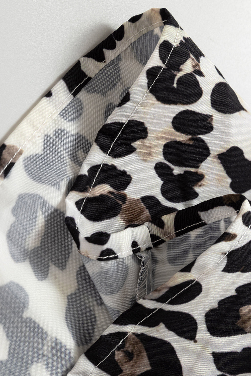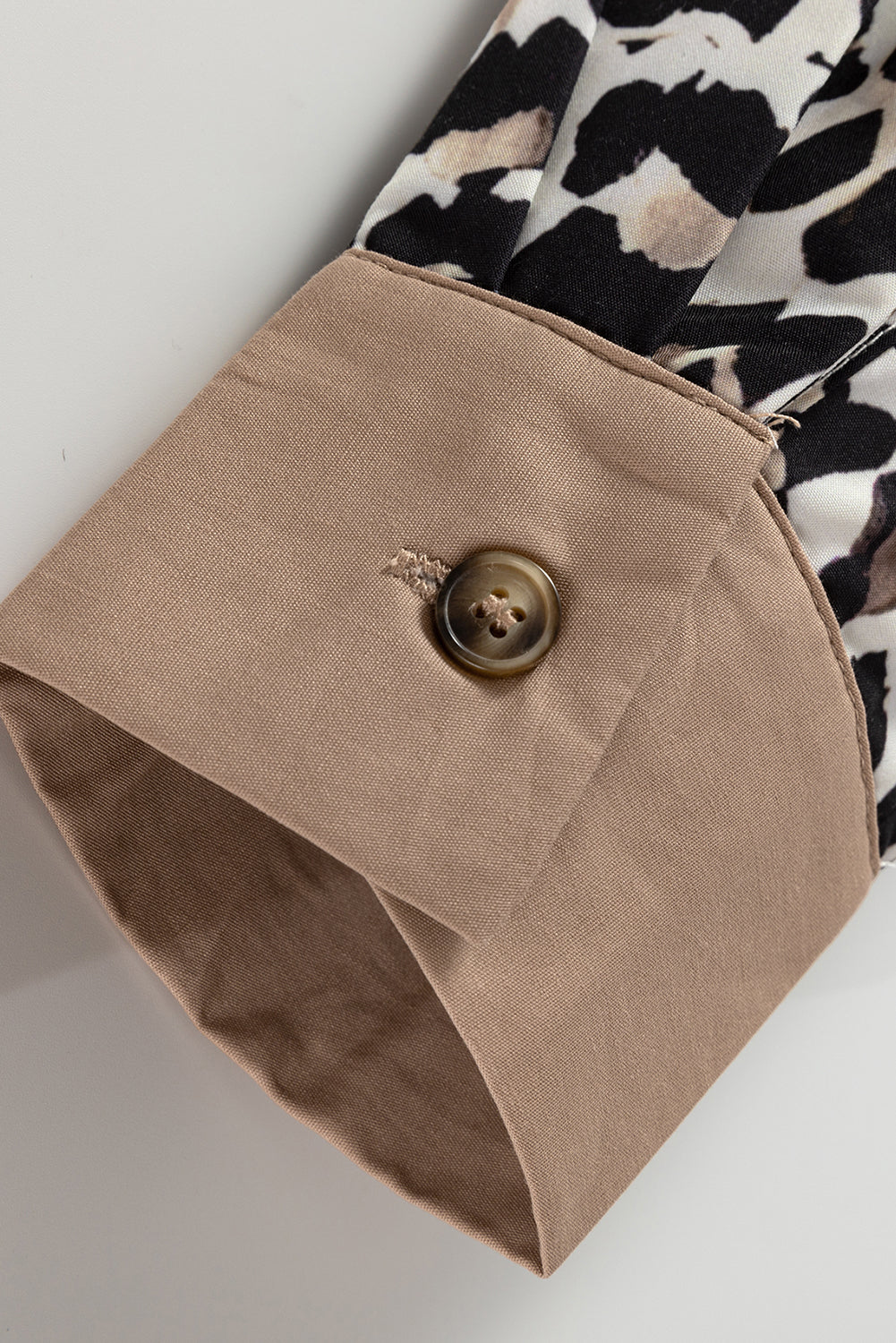 Multicolour Button Striped Collar Leopard Print Long Sleeve Flared Dress